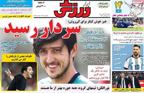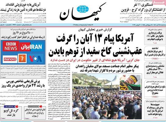 صفحه نخست روزنامههای یکشنبه ۱۵ آبان ۱۴۰۱
