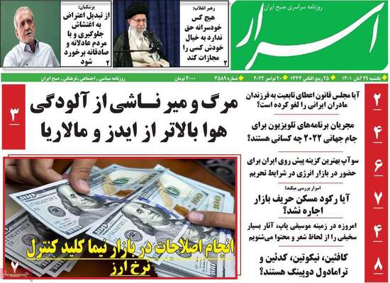 صفحه نخست روزنامههای یکشنبه 29 آبان 1401