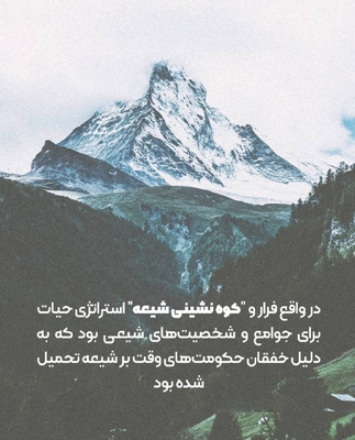 شیعیان در چهارده قرن گذشته برای بقا، همواره در حال فرار بودند و در مناطق صعب العبور سکنی گزیدند. در ایران اصیلترین شیعیان در مناطق طبرستان و دیلمان و خراسان هستند. در هندوستان بیشتر شیعیان در منطقه کوهستانی اوتارپرادش یافت میشوند.در واقع فرار و کوه نشینی شیعیان استراتژی حیات بود که حکومتهای وقت بر شیعه تحمیل کرده بود.