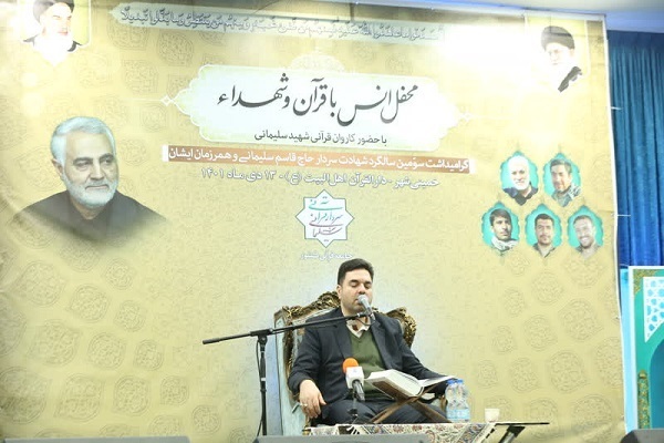 به گزارش ایکنا، ویژهبرنامه محفل انس با قرآن و شهدا با حضور کاروان قرآنی شهید حاج قاسم سلیمانی و تلاوت قاریان بینالمللی احمد ابوالقاسمی، مهدی غلامنژاد و حمیدرضا احمدیوفا در مؤسسه فرهنگی ـ مردمی دارالقرآن اهلبیت(ع) خمینیشهر با حضور جمعی از مسئولان کشوری، استانی، شهرستانی و عموم مردم برگزار شد.