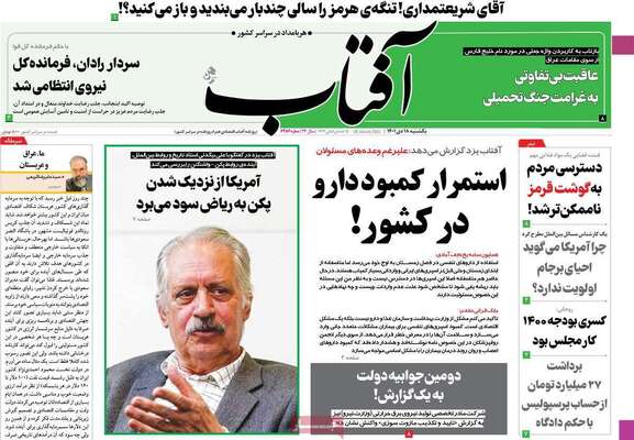 صفحه نخست روزنامههای یکشنبه ۱۸ آبان ۱۴۰۴