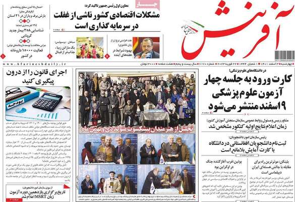 صفحه نخست روزنامههای چهارشنبه 3 اسفند ۱۴۰۱
