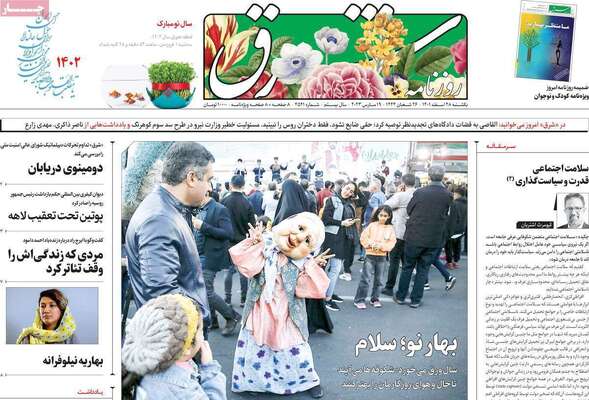 صفحه نخست روزنامههای یکشنبه ۲۸ اسفند ۱۴۰۱