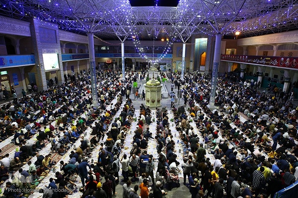 خادمان حرم مطهر حضرت معصومه(س) هر روز با برپایی سفره افطاری ساده در صحن صاحب الزمان(عج) از جمع کثیر روزه داران پذیرایی می‌کنند.