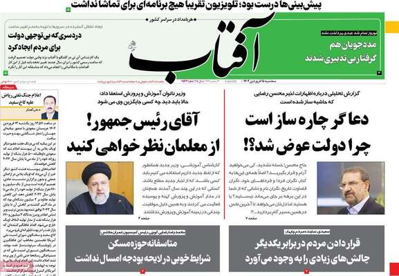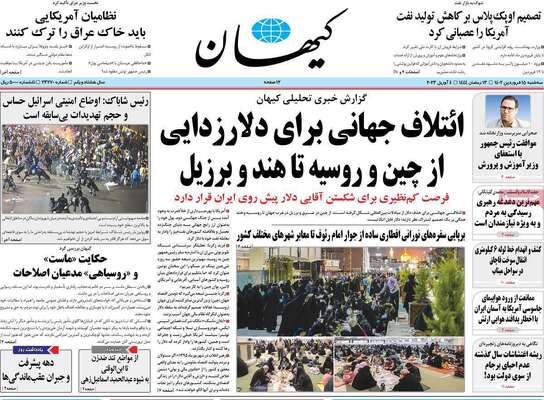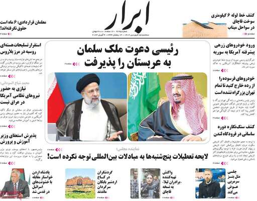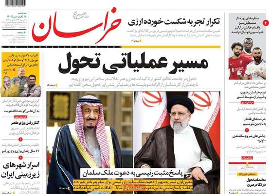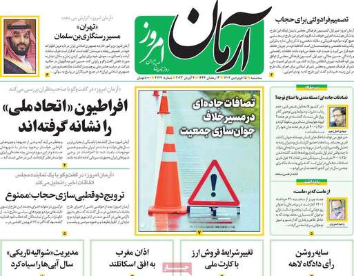 صفحه نخست روزنامههای صبح امروز سهشنبه ۱۵ فروردین ۱۴۰۲ را در ادامه مشاهده میکنید.