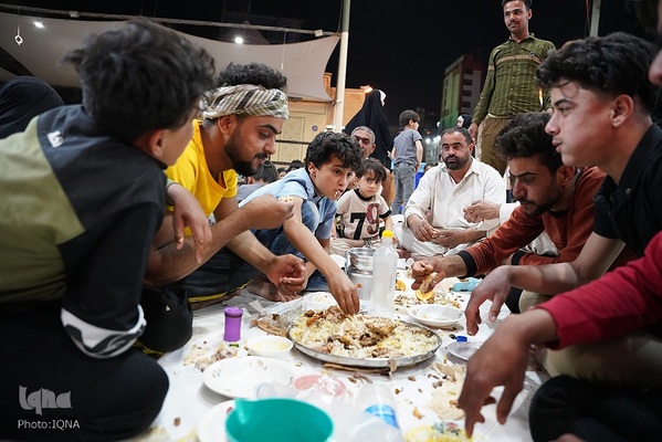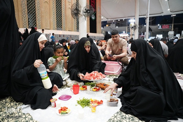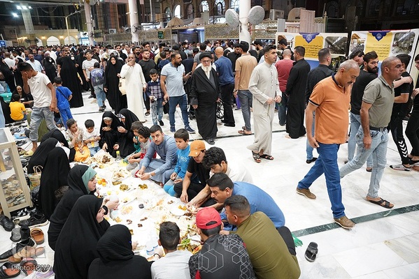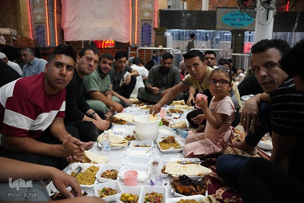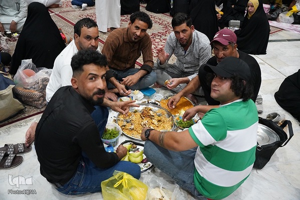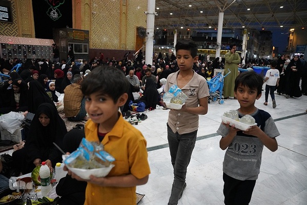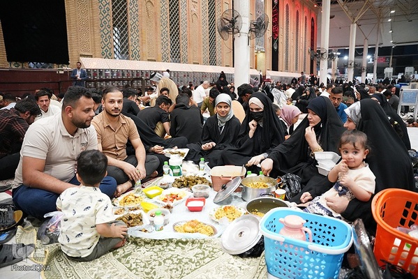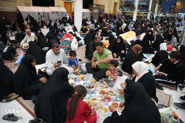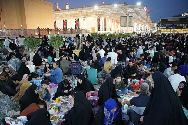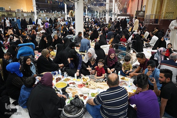 سفرههای افطار در جوار آستان علوی رنگ و بوی دیگری دارد. اینجا دیگر تفاوت زبان، رنگ، نژاد و ملیت معنایی ندارد. هنگام اذان مغرب سفرههای افطاری زائران و محبان اهلبیت(ع) در خیابانهای منتهی به حرم امیرالمومنین علی(ع) پهن میشود.