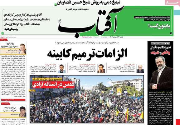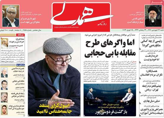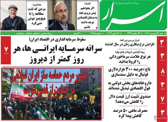 صفحه نخست روزنامههای شنبه ۲۶ فروردین ۱۴۰۲