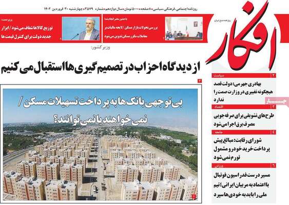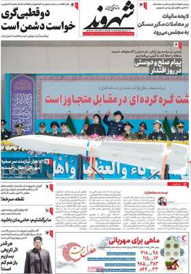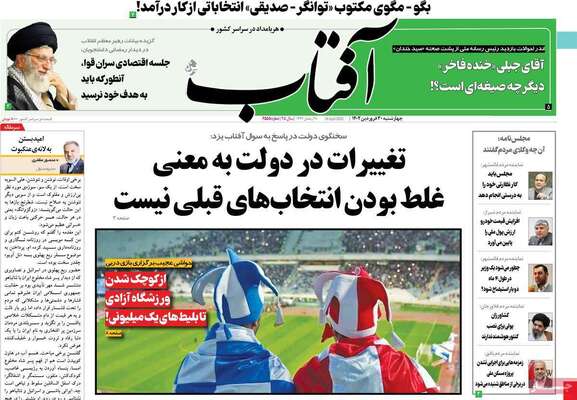 صفحه اول روزنامه های کشور