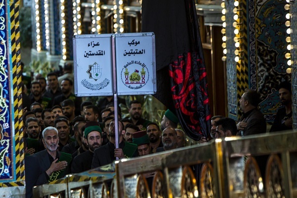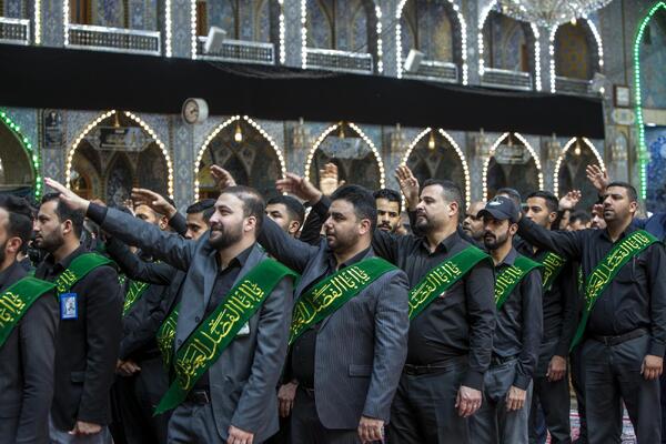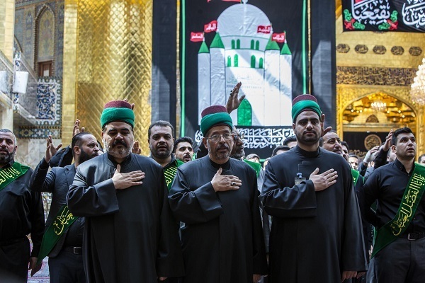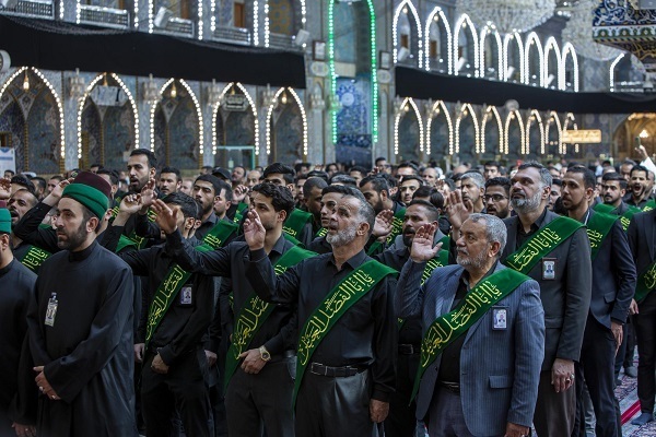 شرکتکنندگان در این مراسم در فضایی آکنده از حزن و اندوه به نوحه سرایی و سینهزنی پرداختند و این کاروان با رسیدن به صحن حرم حسینی به برپایی مراسم عزا با مشارکت زائران حرم اقدام کرد.