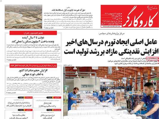 صفحه نخست روزنامههای یکشنبه ۲۴ اردیبهشت ۱۴۰۲