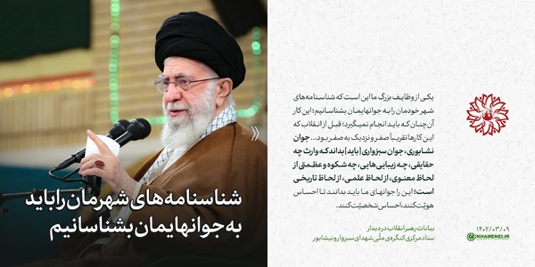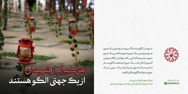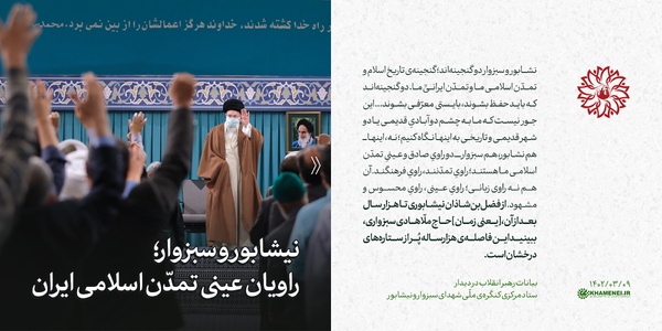 رهبر معظم انقلاب در کنگره ملی بزرگداشت شهدای سبزوار و نیشابور فرمودند «اگر انسان بخواهد درباره شهیدان حرف بزند، زبانش قاصر است از اینکه بخواهد درباره عظمت شهیدان و ارزش شهیدان چیزی بگوید؛ حرفشان، سلوکشان، رفتارشان، وصیتنامههایشان درس است». در ادامه بخشی از بیانات رهبر انقلاب اسلامی در دیدار دستاندرکاران برگزاری کنگره ملی بزرگداشت دو هزار و چهل و چهار شهید سبزوار و همچنین دست اندرکاران کنگره ملی دو هزار و چهارصد و نود و هشت شهید نیشابور و جمعی از خانوادههای شهدای این دو شهر، در قالب سخننگاشت ارائه میشود.