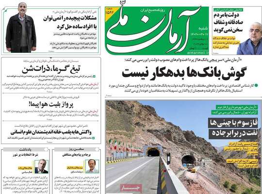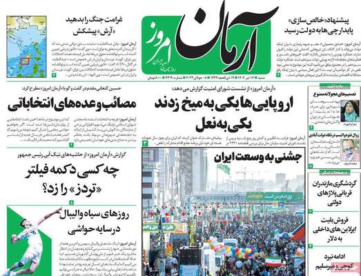 صفحه اول روزنامه های کشور