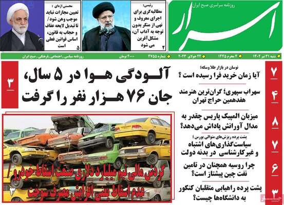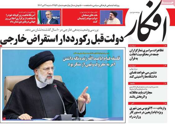 صفحه نخست روزنامههای شنبه ۳۱ تیر ۱۴۰۲