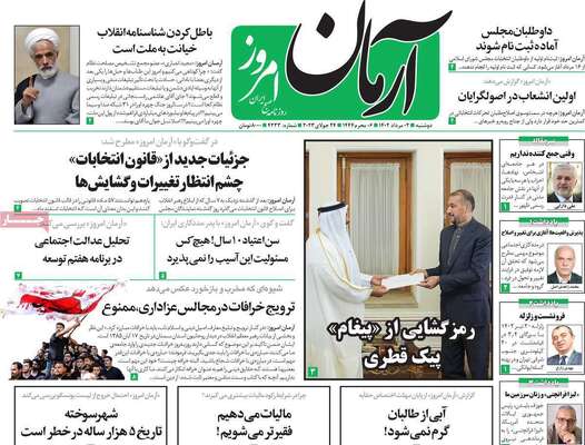 صفحه نخست روزنامههای دوشنبه ۲ مرداد ۱۴۰۲