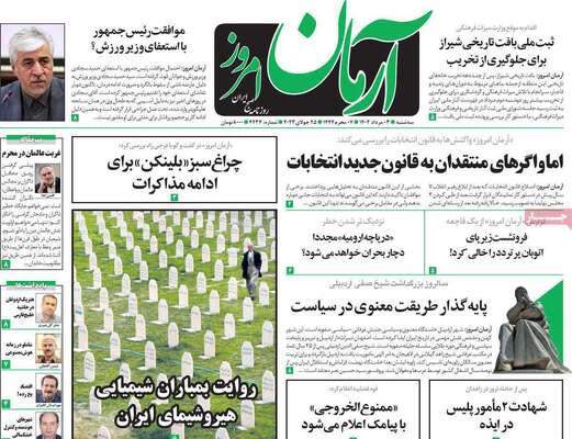 صفحه نخست روزنامههای صبح امروز سهشنبه ۳ مرداد ۱۴۰۲ را در ادامه مشاهده میکنید.