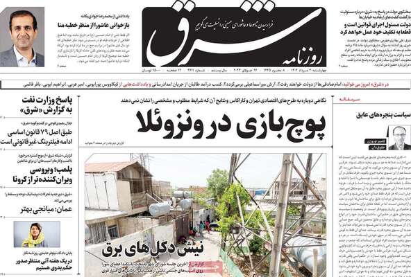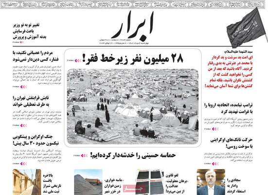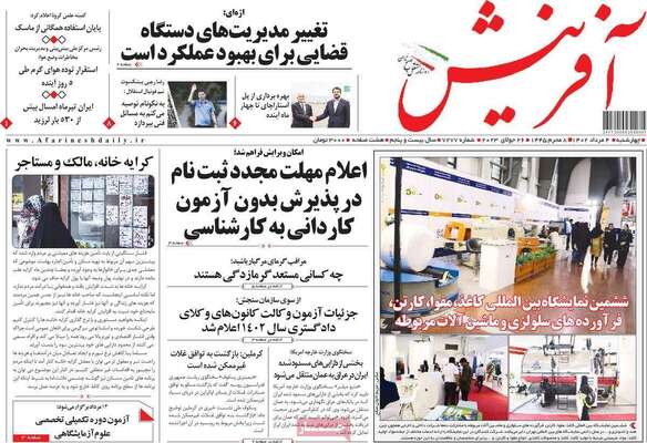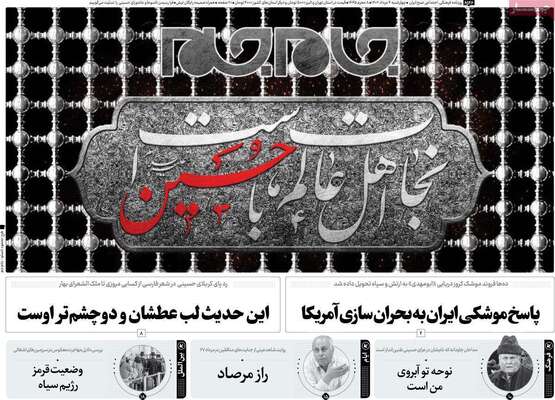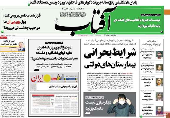 صفحه اول روزنامه های کشور