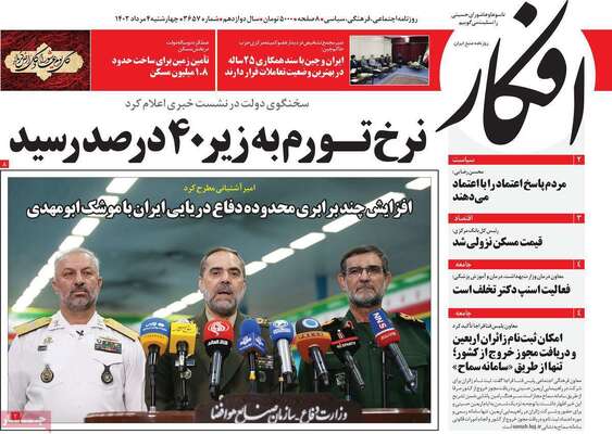 صفحه نخست روزنامههای صبح امروز چهارشنبه ۴ مرداد ۱۴۰۲ را در ادامه مشاهده میکنید.