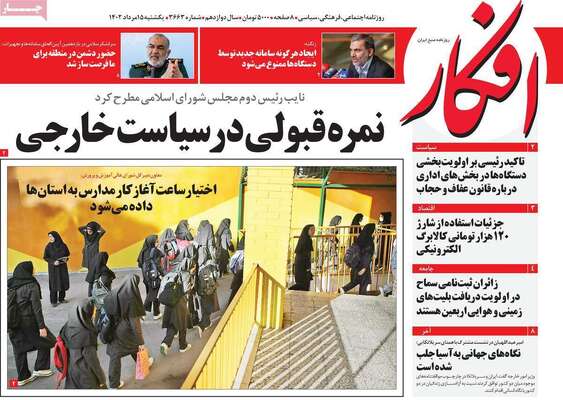صفحه نخست روزنامههای یکشنبه ۱۵ مرداد ۱۴۰۲