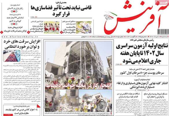 صفحه نخست روزنامههای صبح امروز سهشنبه ۱۷ مرداد ۱۴۰۲ را در ادامه مشاهده میکنید.