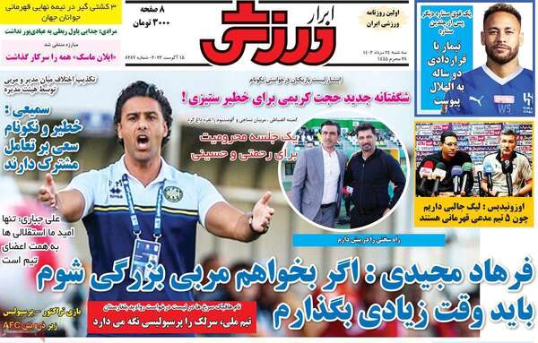 صفحه نخست روزنامههای سهشنبه ۲۴ مرداد ۱۴۰۲