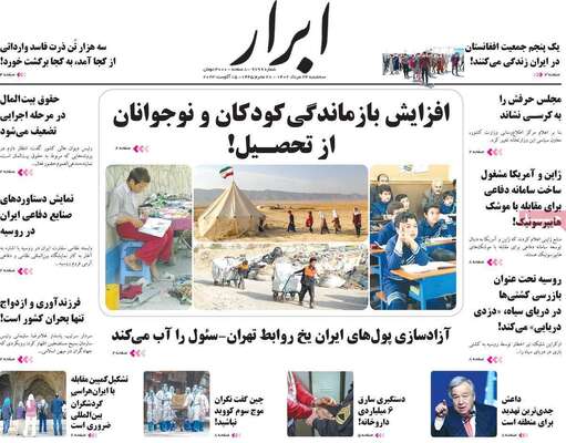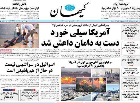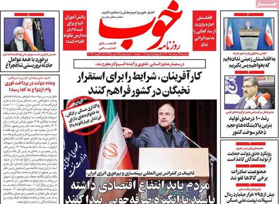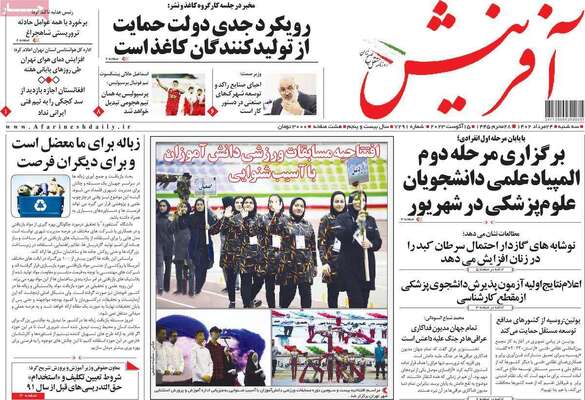 صفحه اول روزنامه های کشور