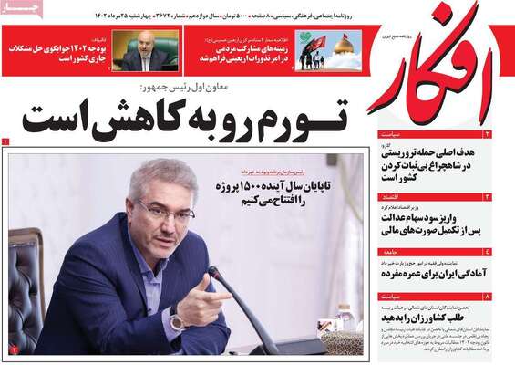 صفحه نخست روزنامه‌های صبح امروز چهارشنبه ۲۵ مرداد ۱۴۰۲ را در ادامه مشاهده می‌کنید.
