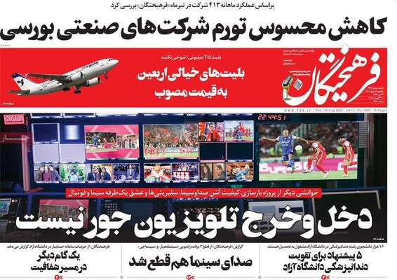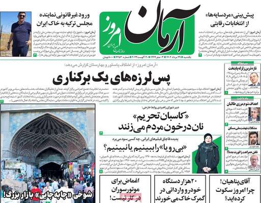 صفحه نخست روزنامه‌های یکشنبه ۲۹ مرداد ۱۴۰۲
