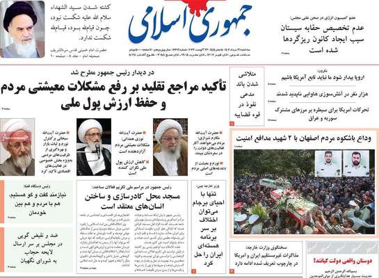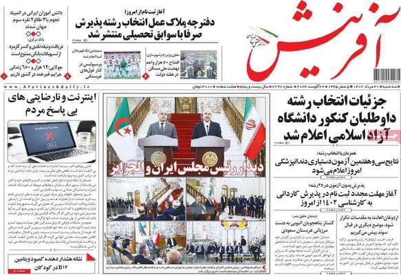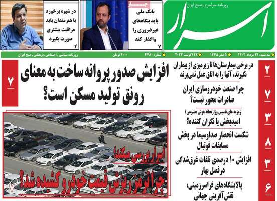 صفحه نخست روزنامههای صبح امروز سهشنبه ۳۱ مرداد ۱۴۰۲ را در ادامه مشاهده میکنید.
