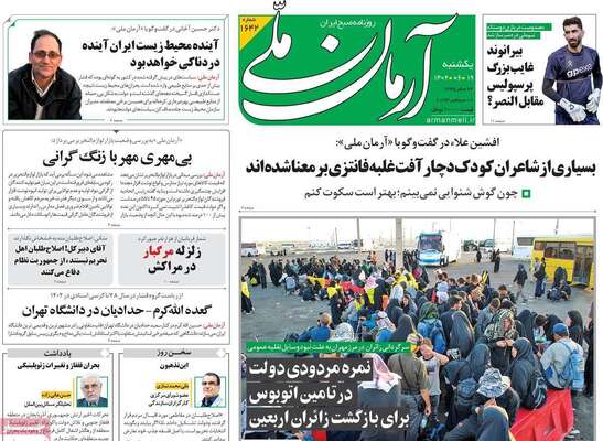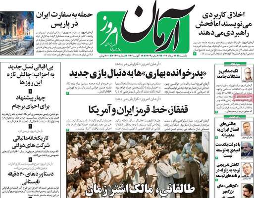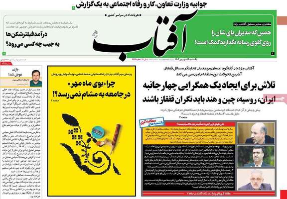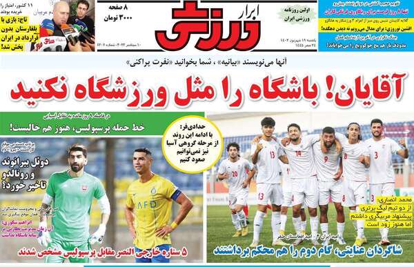 صفحه نخست روزنامههای یکشنبه ۱۹ شهریور ۱۴۰۲