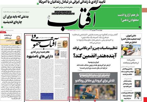 صفحه نخست روزنامههای چهارشنبه ۲۲ شهریور ۱۴۰۲