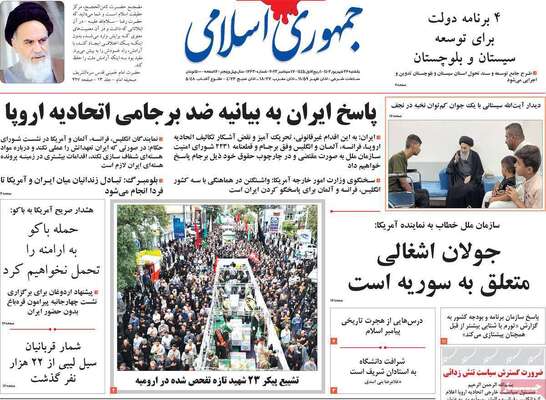 صفحه نخست روزنامههای یکشنبه ۲۶ شهریور ۱۴۰۲