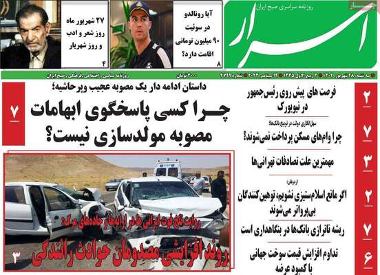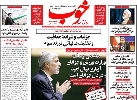 صفحه نخست روزنامههای سه شنبه ۲۸ شهریور ۱۴۰۲