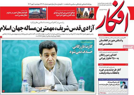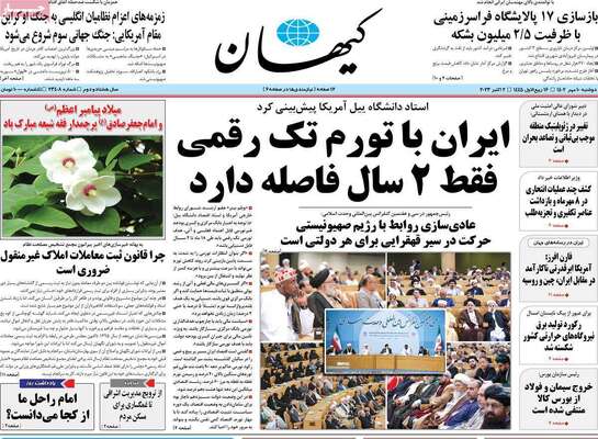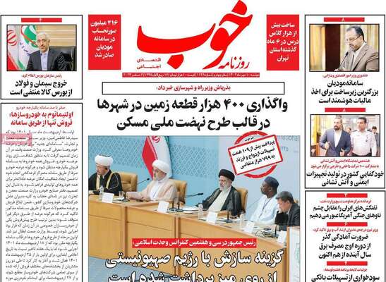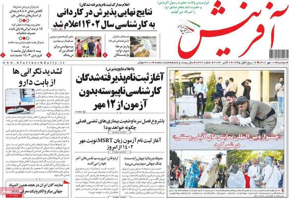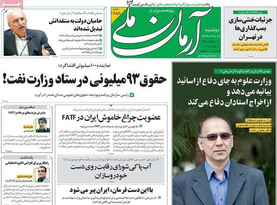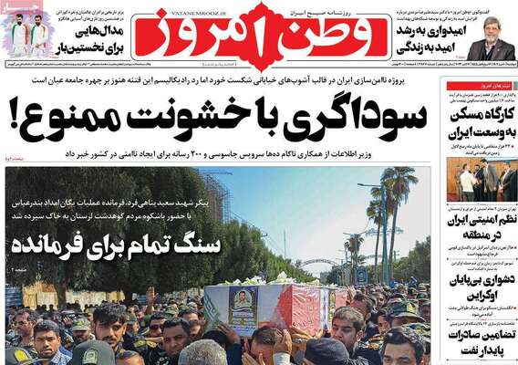 صفحه اول روزنامه های کشور