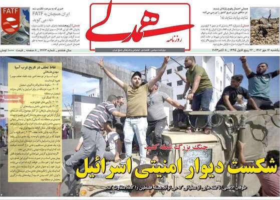 صفحه نخست روزنامههای یکشنبه ۱۶ مهر ۱۴۰۲
