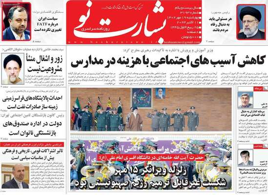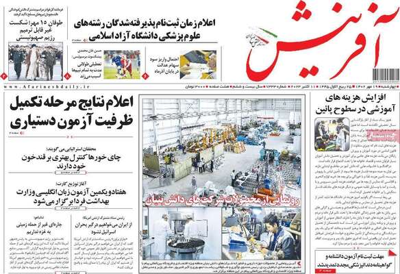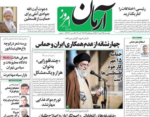 صفحه اول روزنامه های کشور