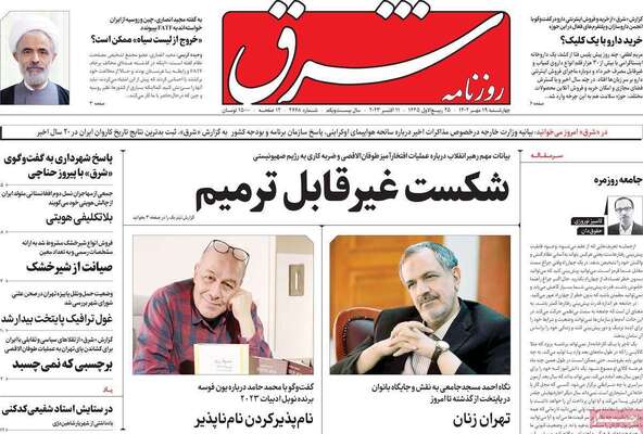 صفحه نخست روزنامههای چهارشنبه ۱۹ مهر ۱۴۰۲