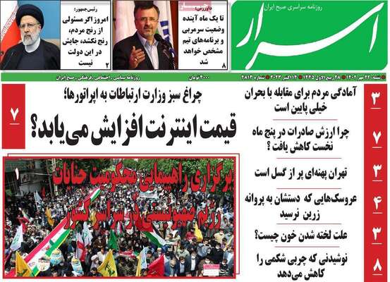 صفحه نخست روزنامه های کشور