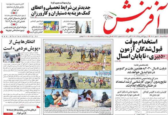 صفحه نخست روزنامههای یکشنبه ۳۰ مهر ۱۴۰۲