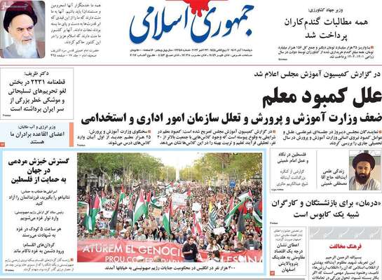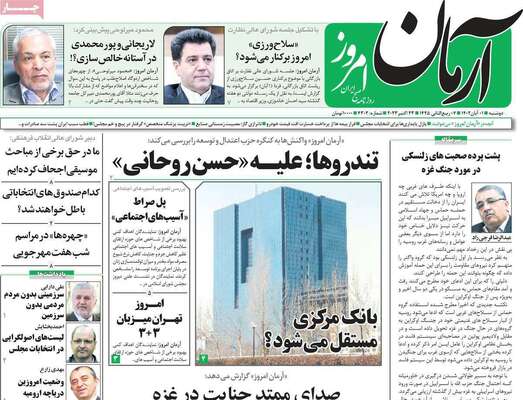 صفحه نخست روزنامه‌های دوشنبه ۱ آبان ۱۴۰۲