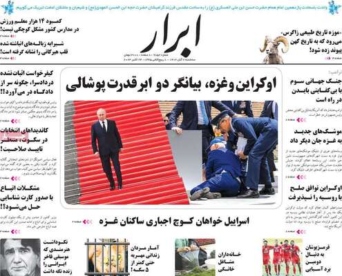 صفحه نخست روزنامههای صبح امروز سهشنبه ۲ آبان ۱۴۰۲ را در ادامه مشاهده میکنید.