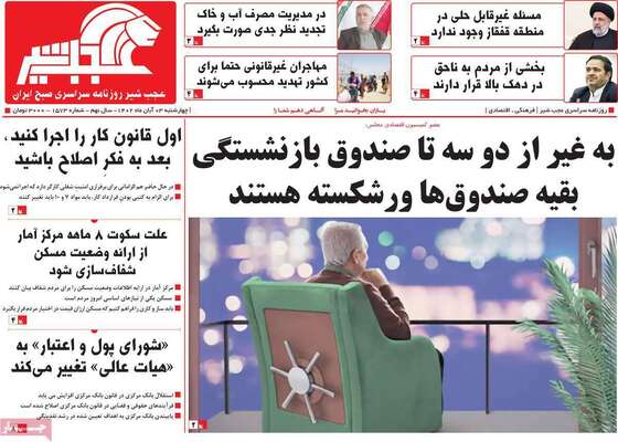 صفحه نخست روزنامههای چهارشنبه ۳ آبان ۱۴۰۲
