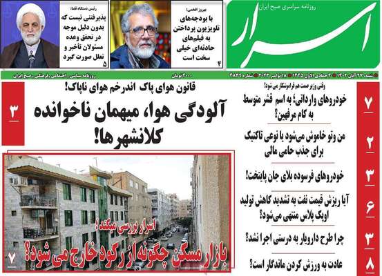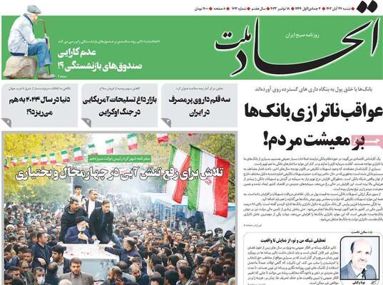 صفحه نخست روزنامههای صبح امروز شنبه ۲۷ آبان ۱۴۰۲ را در ادامه مشاهده میکنید.