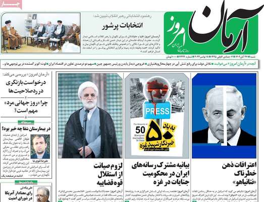صفحه نخست روزنامههای چهارشنبه ۲۱ آبان ۱۴۰۴
