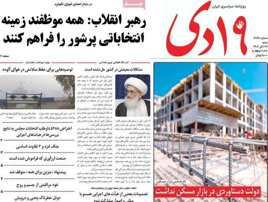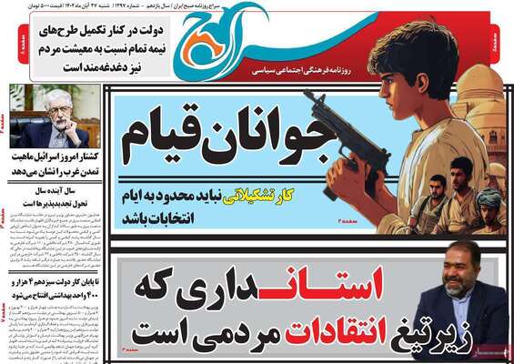 صفحه نخست روزنامههای شنبه ۲۷ آبان ۱۴۰۲