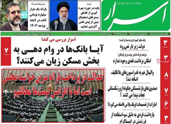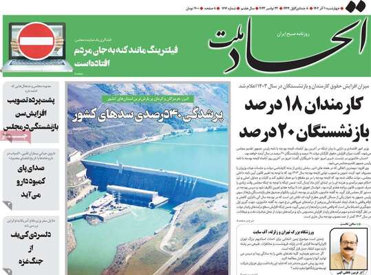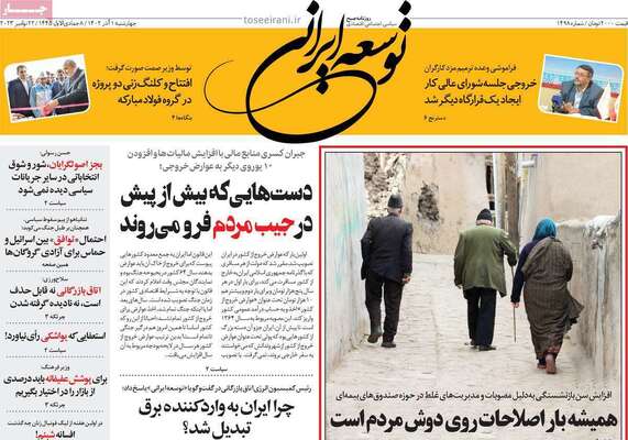 صفحه نخست روزنامههای صبح امروز چهارشنبه ۱ آذر ۱۴۰۲ را در ادامه مشاهده میکنید.