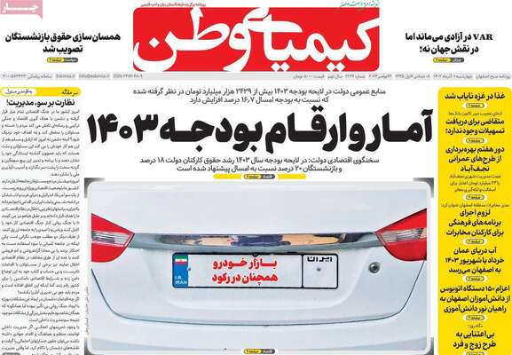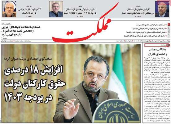 صفحه نخست روزنامههای چهارشنبه ۱ آذر ۱۴۰۲