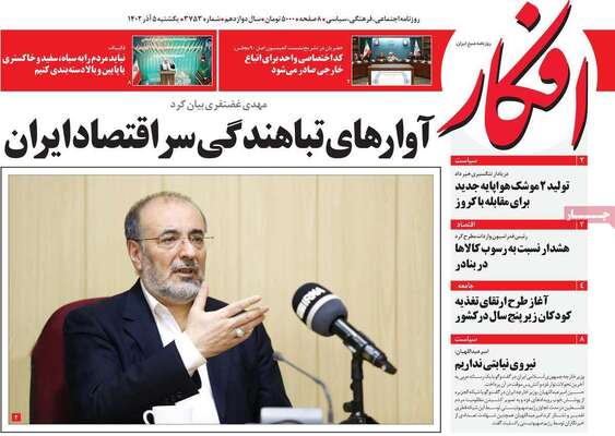 صفحه نخست روزنامههای یکشنبه ۵ آذر ۱۴۰۲
