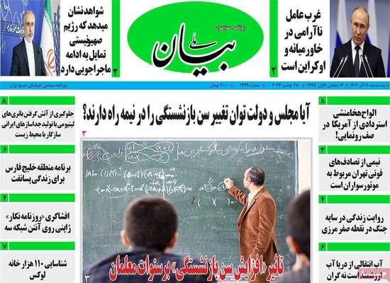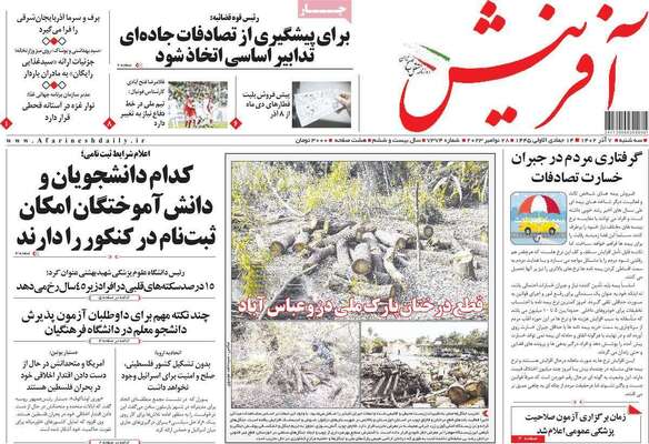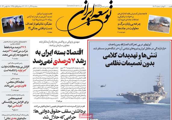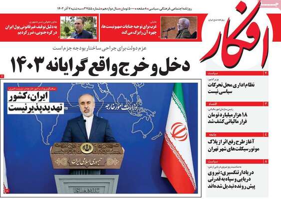 صفحه نخست روزنامههای سهشنبه ۷ آذر ۱۴۰۲