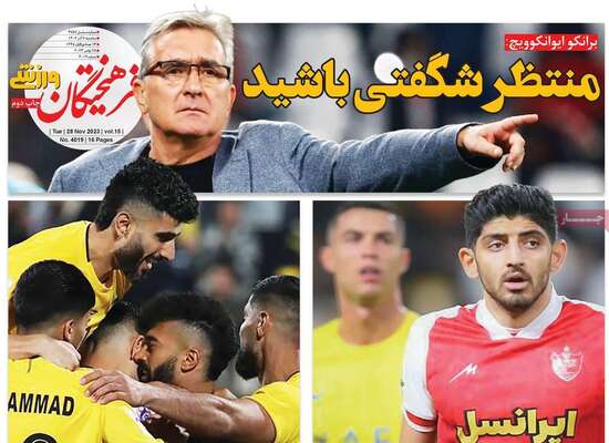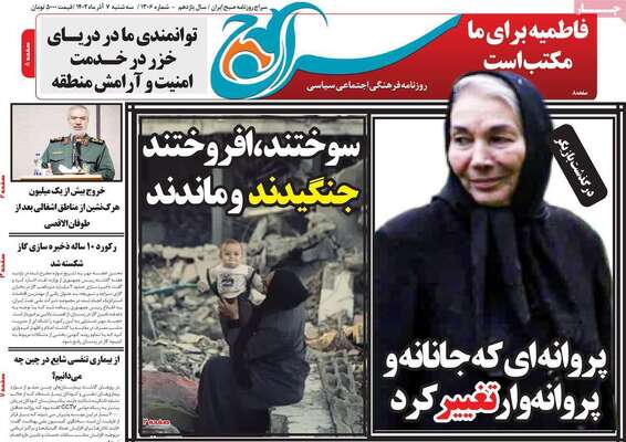 صفحه نخست روزنامههای صبح امروز سهشنبه ۷ آذر ۱۴۰۲ را در ادامه مشاهده میکنید.