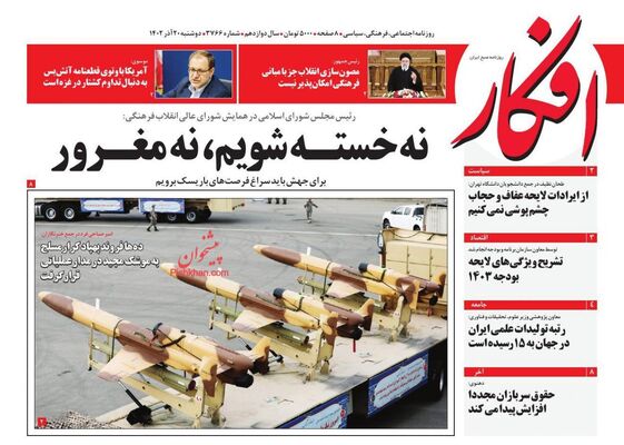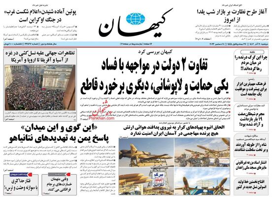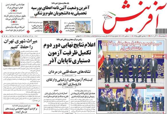 صفحه نخست روزنامههای دوشنبه ۲۰ آذر ۱۴۰۲